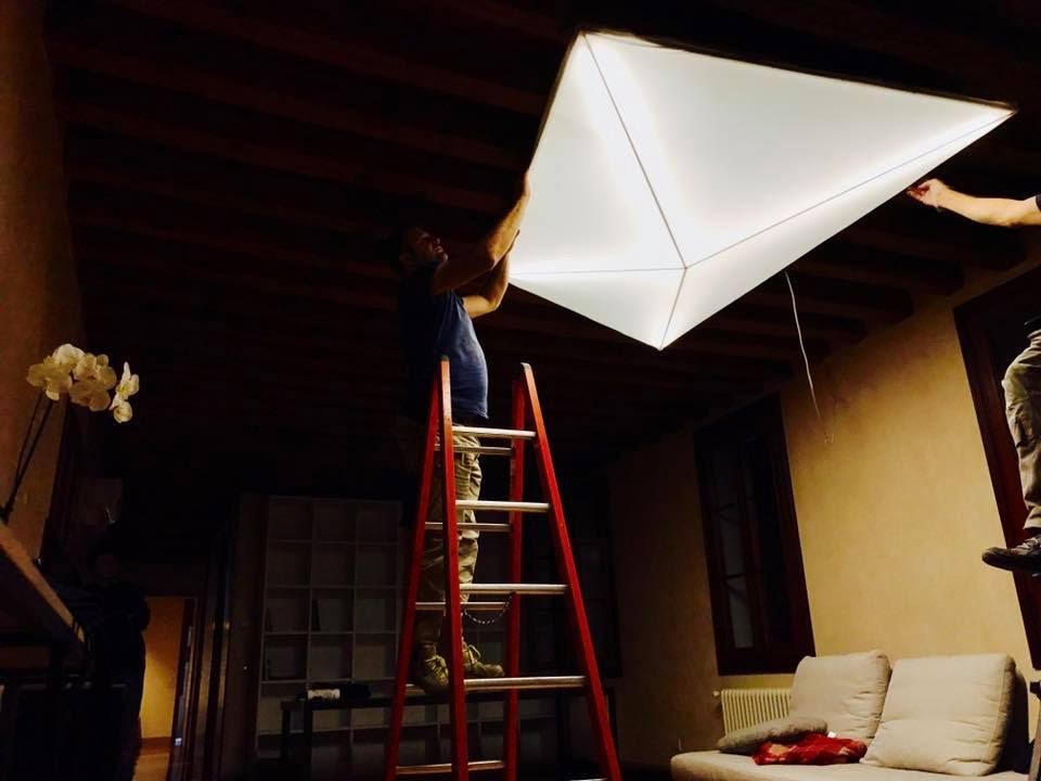 Plafoniera cm 230x160 su disegno in tessuto sfoderabile e retroilluminato con LED.