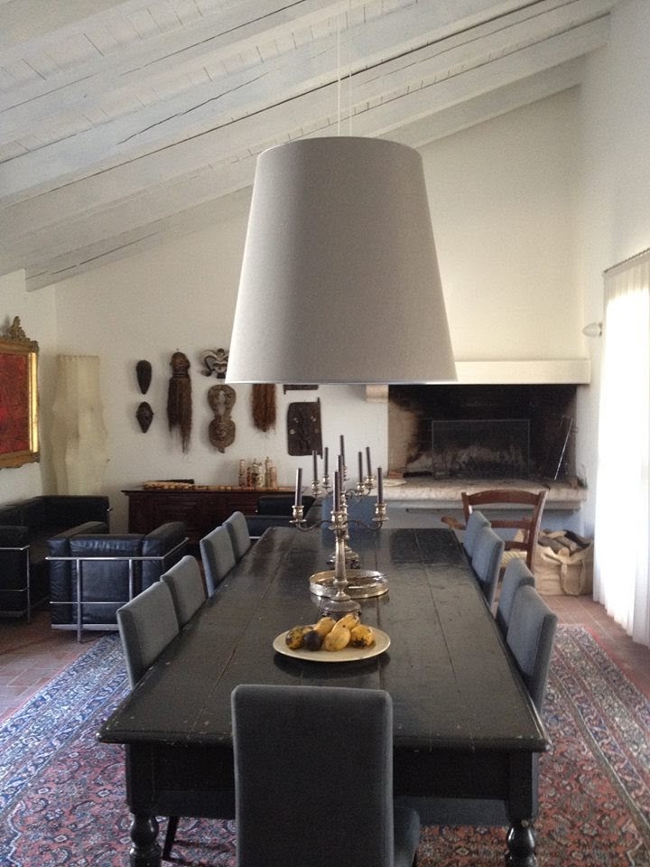 Sospensioni paralumi tronco cono moderni in tessuto Canapino Grigio per residenza privata.