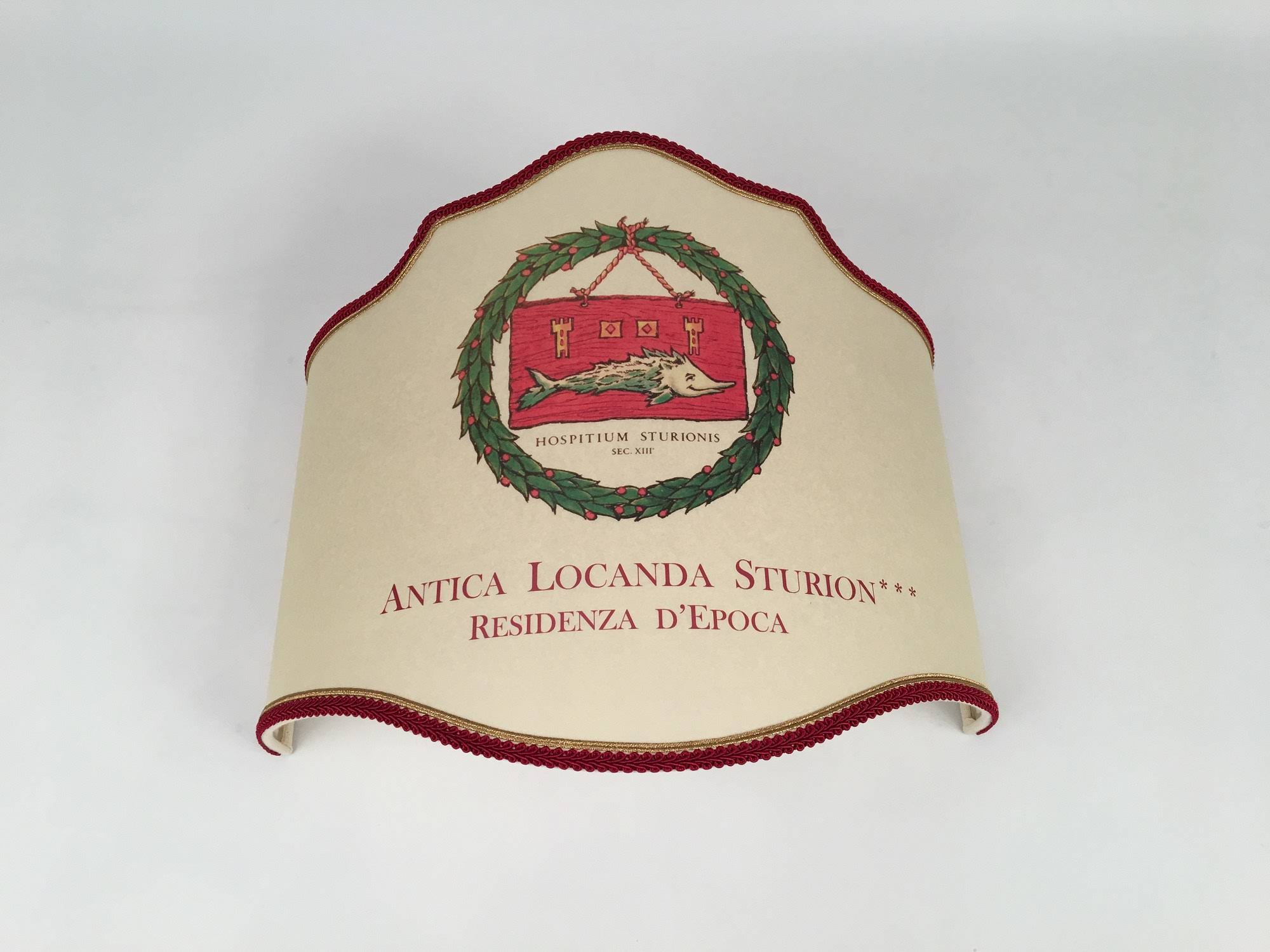 Applique completa a forma di ventola antiquario in pergamena con stampa personalizzata del logo