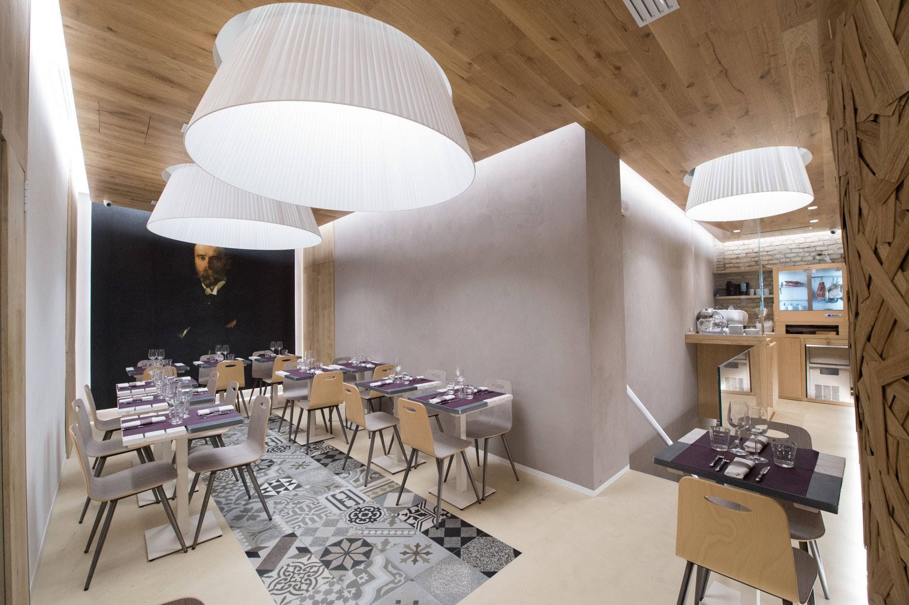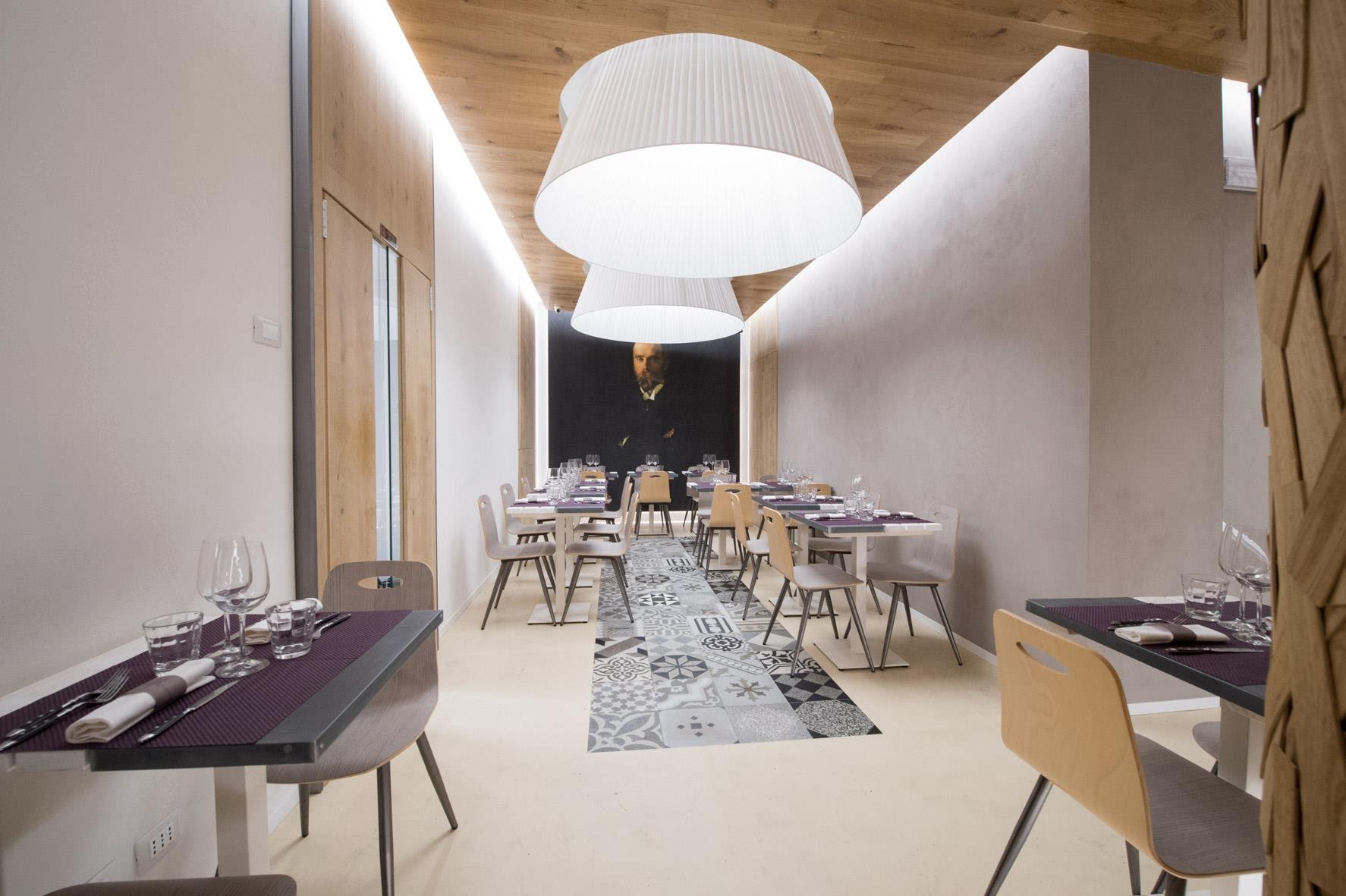 Plafoniere a paralume tronco cono plissè di grandi dimensioni in diametro 1,8 metri e 1 metro realizzate per ristorante a Roma.