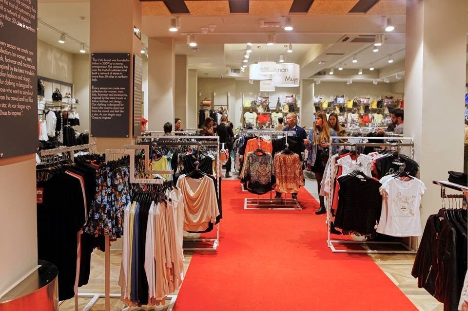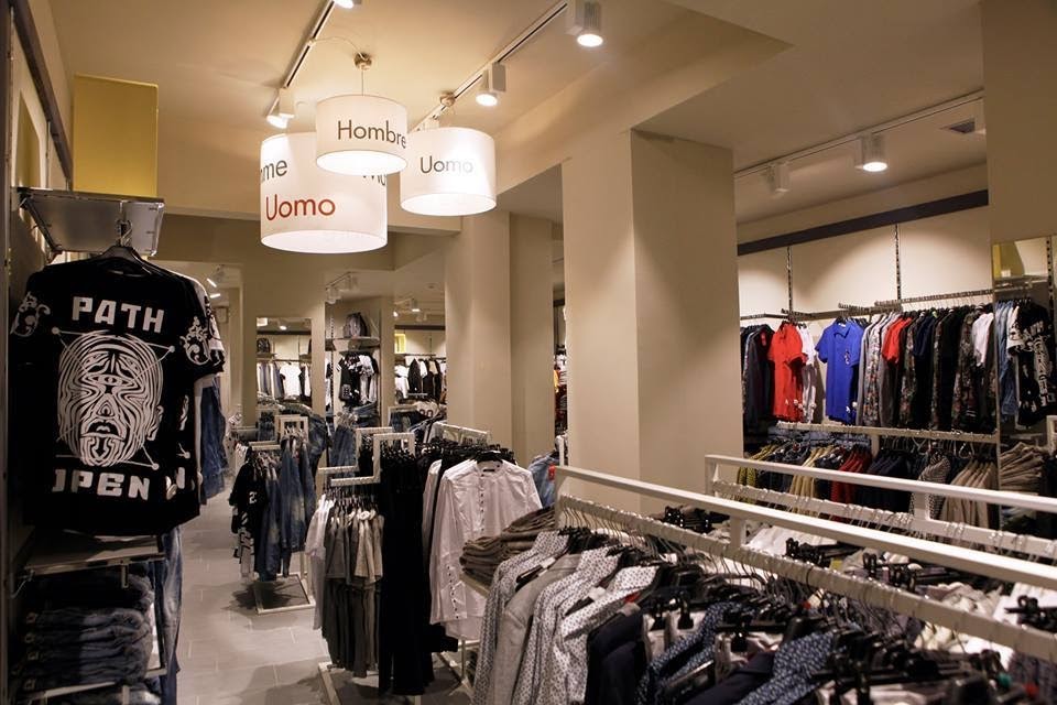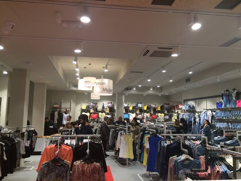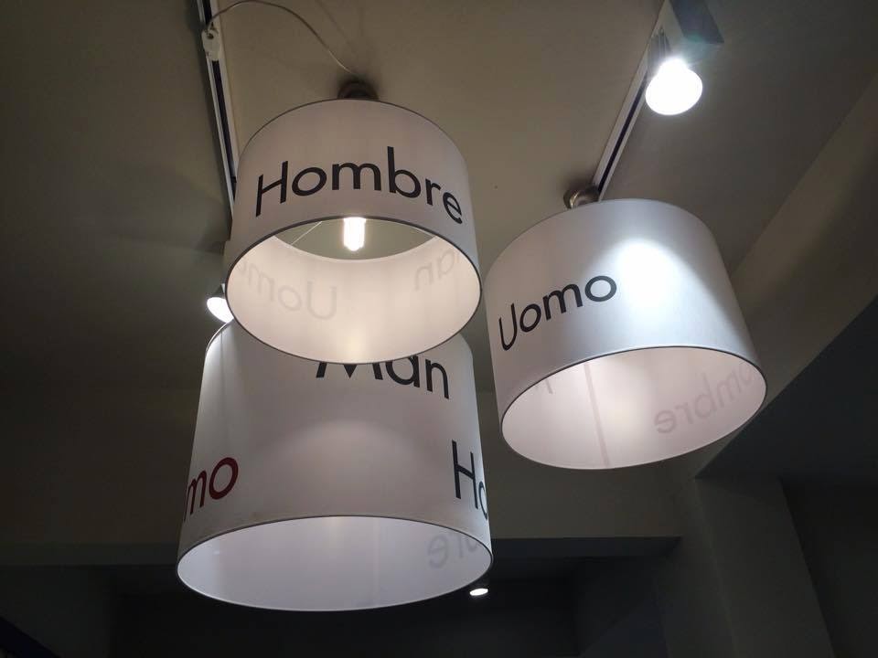 Sospensioni paralumi stampati con scritte di reparto per catena negozi di abbigliamento.
